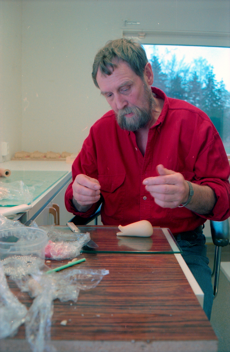 Grisar av marsipan. Sören Elmqvist tillverkar marsinpangrisar inför julmarknaden.