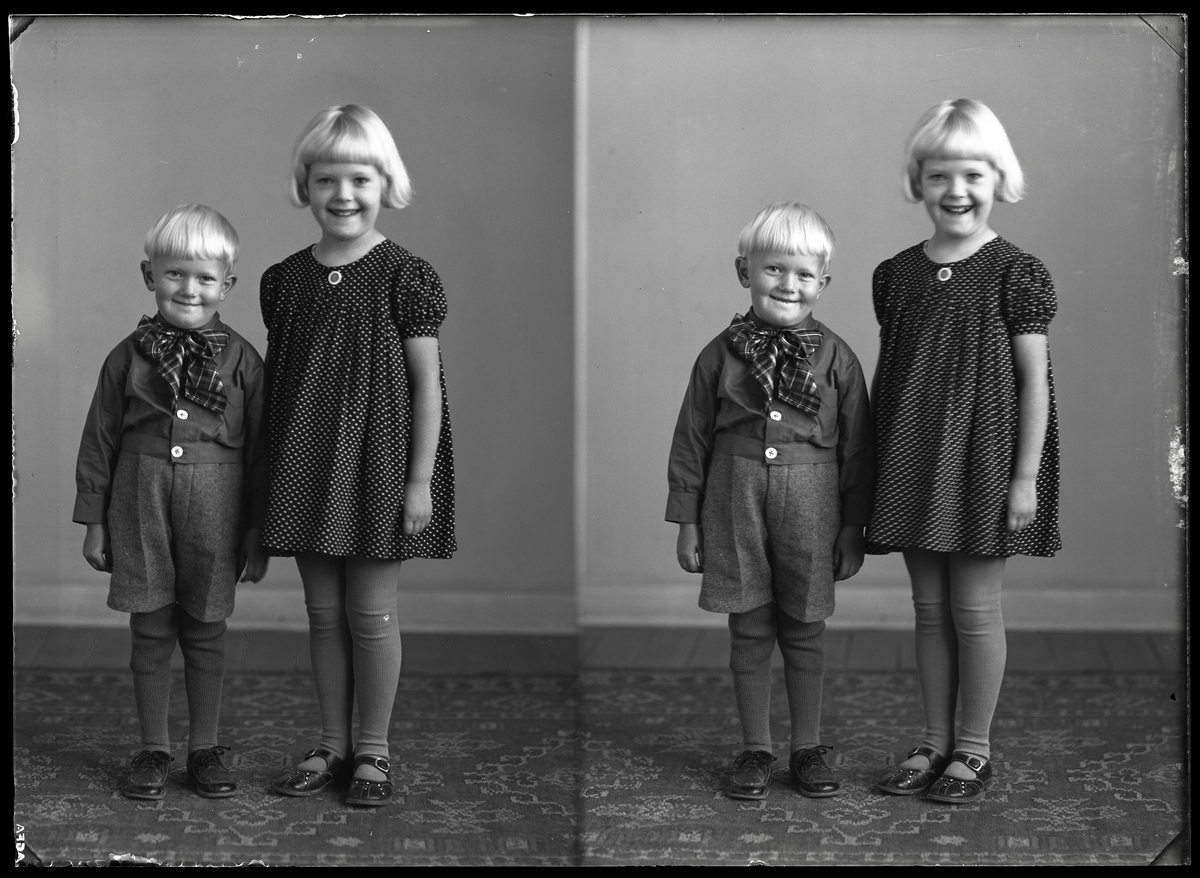 Grupporträtt, två barn. Paavo Kangasniemi, Mölntorp.