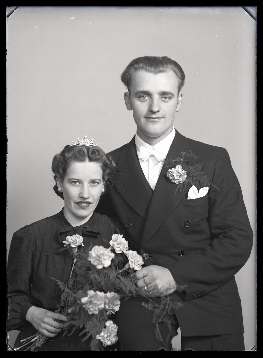 Bröllopsporträtt, brudpar, Vanloo Pettersson, Lyckhem, Sörstafors.