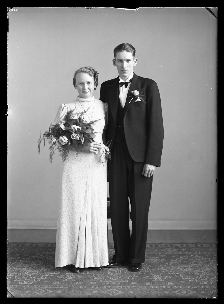 Bröllopsporträtt, brudpar, Thure Skanser, Skansen, Hallstahammar.