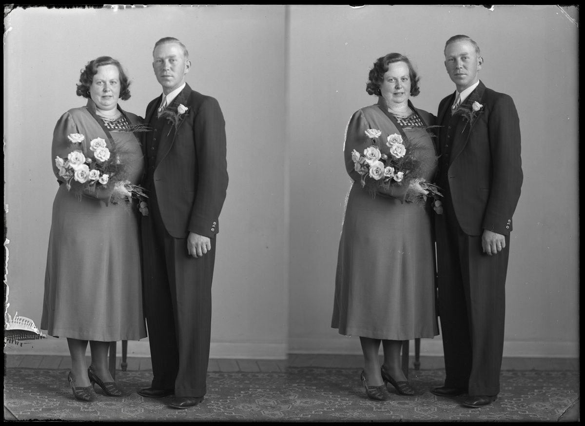 Bröllopsporträtt, brudpar. Erik Avelin, Sörstafors, Kolbäck.