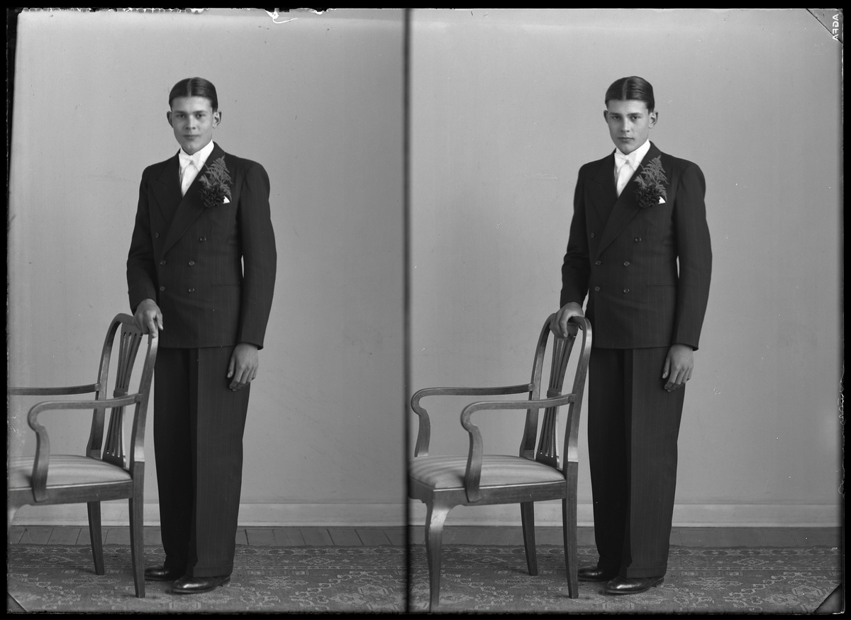 Porträtt, läsfoto. Erik Vallin, Amsta.