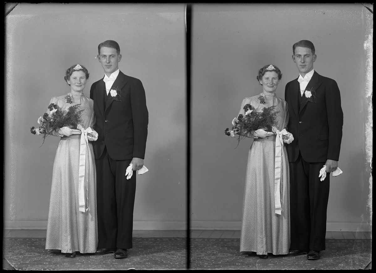 Bröllopsporträtt. Brudpar, Sven Larsson, Berga, Hallstahammar.