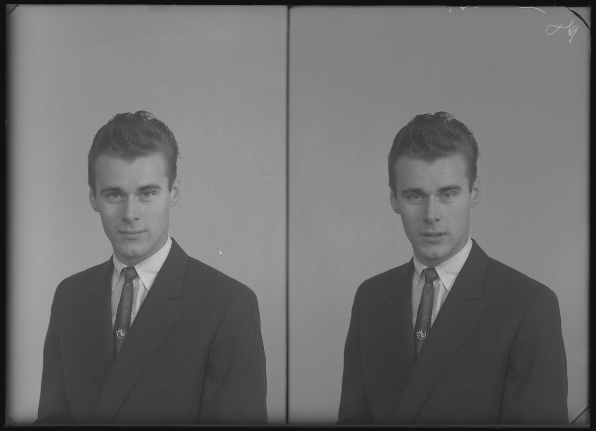 Mansporträtt, pass. Börje Persson, Skomakarvägen 12B, Kolbäck. Ur Gustaf Åhmans samling.