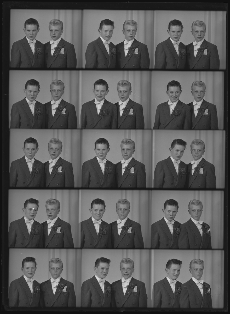 Grupporträtt, två personer, konfirmation. Björn Broström - Rune Svahn. Ur Gustaf Åhmans samling.