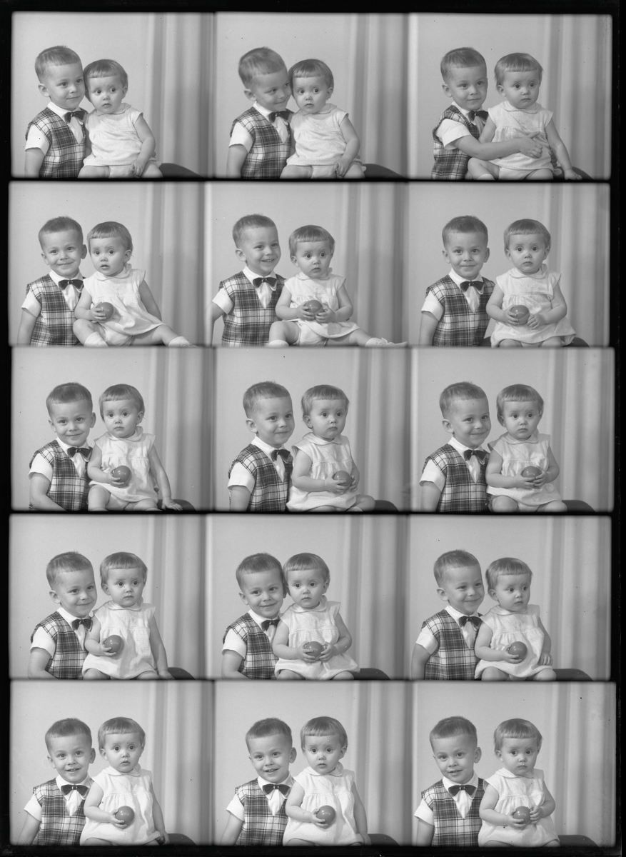 Grupporträtt, två barn, fru Doris Wiklund, Tingshusgatan 13, Kolbäck, polyfoto.