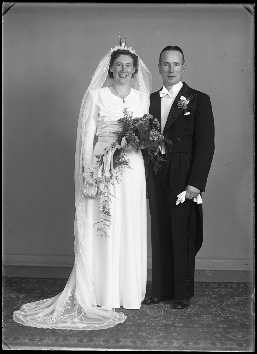 Bröllopsporträtt. Brudpar, Sigge Jansson, Gillbergavägen 47, Eskilstuna.