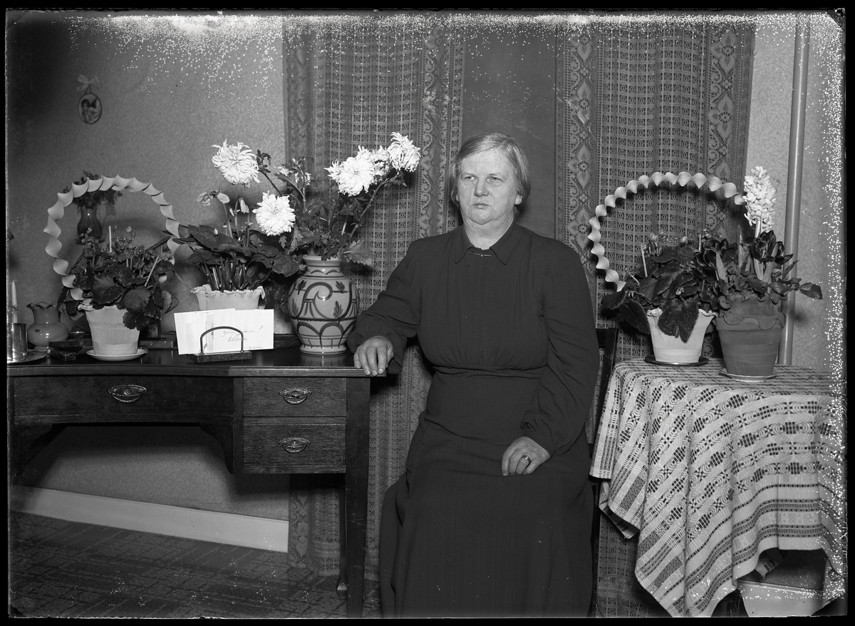 Kvinnoporträtt, 60-års foto. Fru Jenny Falk, Mölntorp, Kolbäck.