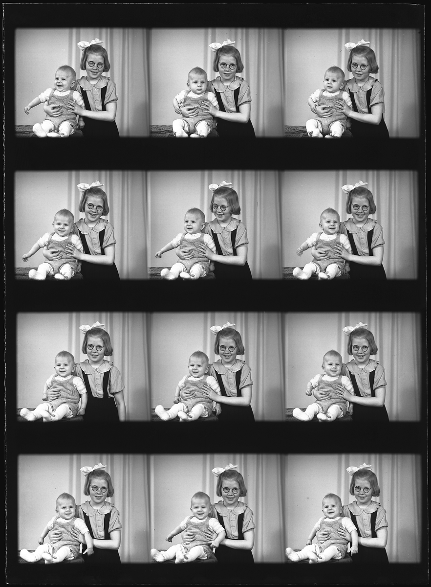 Grupporträtt. Två barn, Fru Stina Karlsson, Mölntorp.