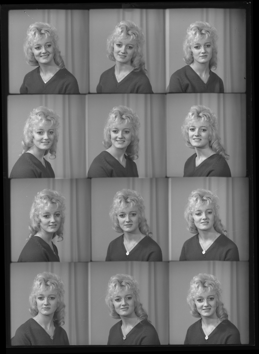Kvinnoporträtt, polyfoto. Gun Alexandersson, Kolbäck. Ur Gustaf Åhmans samling.