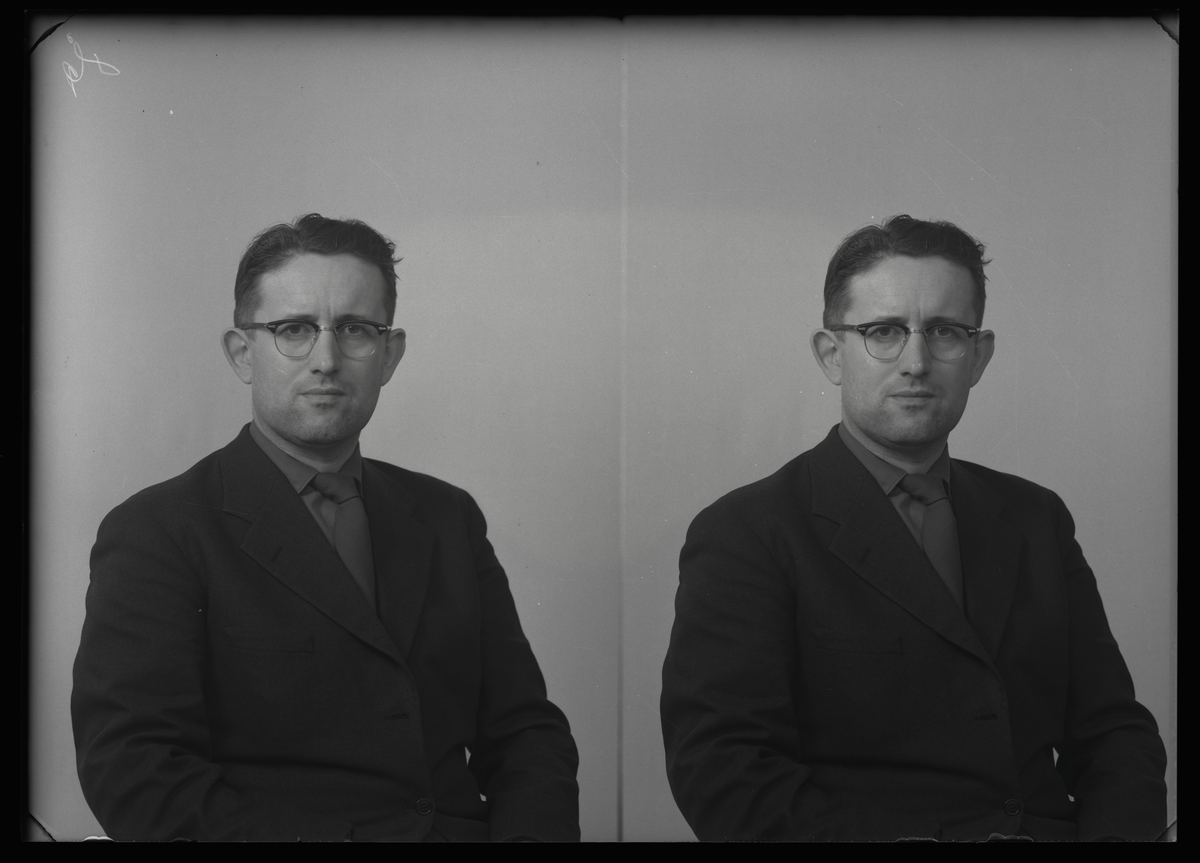 Porträtt, (körfoto, passfoto), Erik Dahlberg, Vänsta, Kolbäck. Ur Gustaf Åhmans samling.