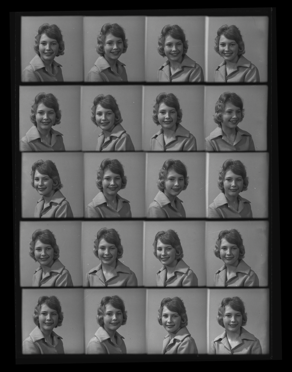 Kvinnoporträtt, polyfoto. Kerstin Barkman, Herrevad. Ur Gustaf Åhmans samling.