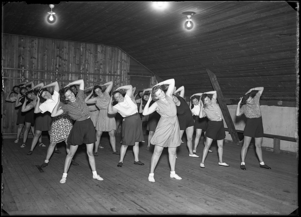 Titel: Grupporträtt. Gymnaster, Damer, Gymnastiken. Ur Gustaf Åhmans samling.