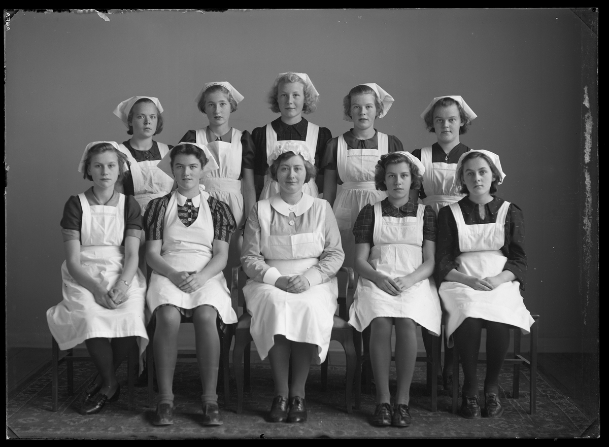 Grupporträtt, skolkökskurs. Godtemplarlokalen, Kolbäck.
