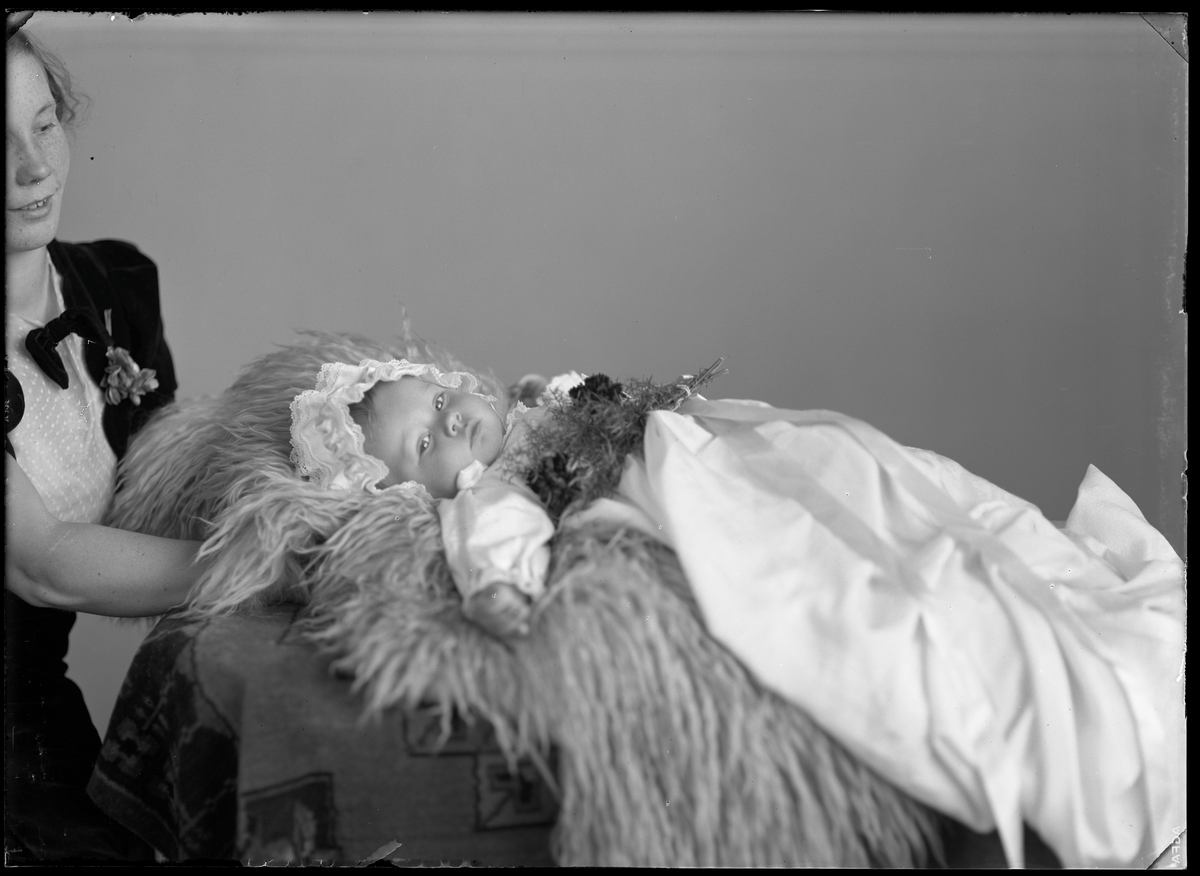 Barnporträtt, Folke i dopklänning. Folke Berglund, Kolbäck.