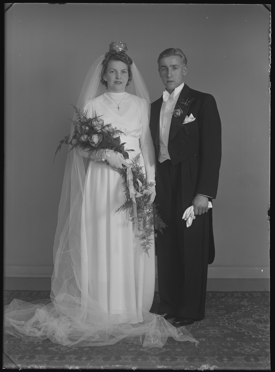 Bröllopsporträtt, brudpar. Gustafsson. Ur Gustaf Åhmans samling.