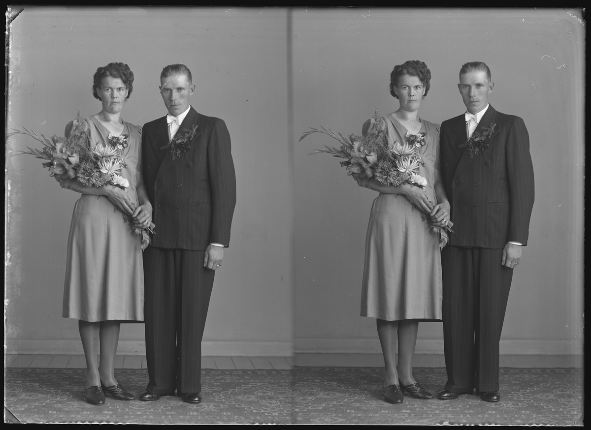 Bröllopsporträtt, brudpar. Per Magnusson. Ur Gustaf Åhmans samling.