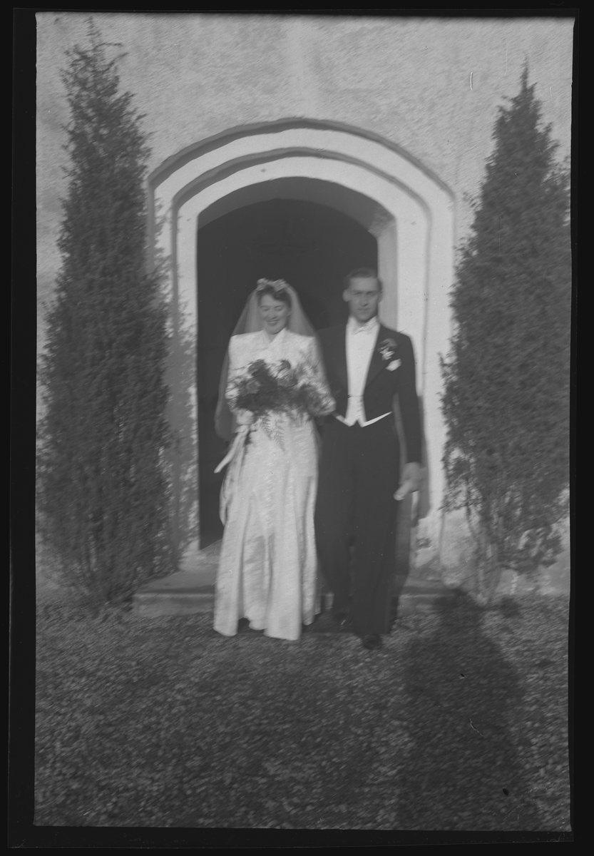 Bröllopsporträtt, utanför kyrkan. Lennart Rippert. Ur Gustaf Åhmans samling.