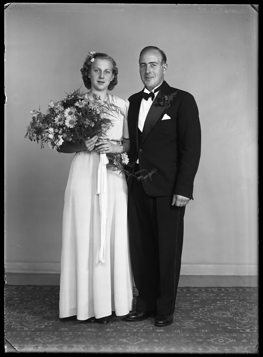 Bröllopsporträtt. Brudpar, Arthur Nyberg, Herrskogen, Strömsholm.