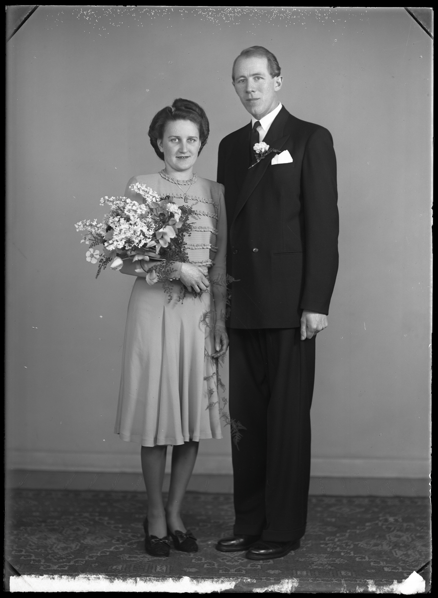 Bröllopsporträtt, brudpar. Folke Vestberg, Kolbäck.