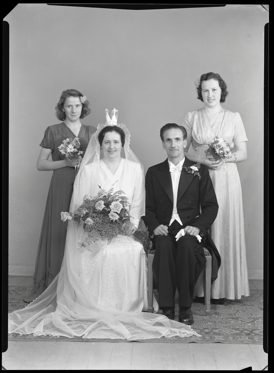 Grupporträtt, bröllop, fyra personer, Valter Karlsson, telefonväxeln, Strömsholm.