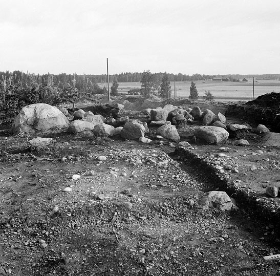 Titel: Romfartuna sn Äs RAÄ 119 Arkeologisk undersökning utförd av Vlm / Åke Hyenstrand och Ann Nilsson 1967 A10 Stensättning, rund.