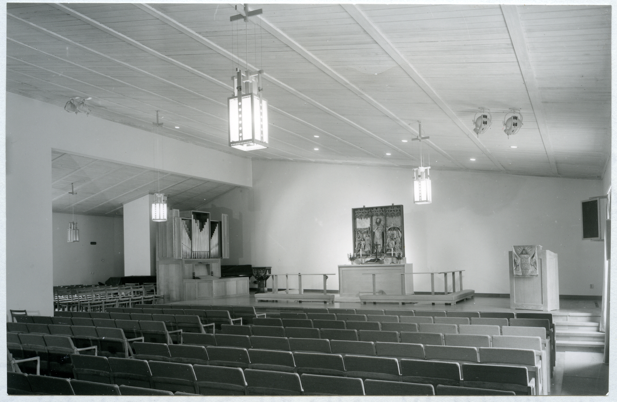 Interiör av kyrksal i Kyrkbacksgården. 1960-talet.