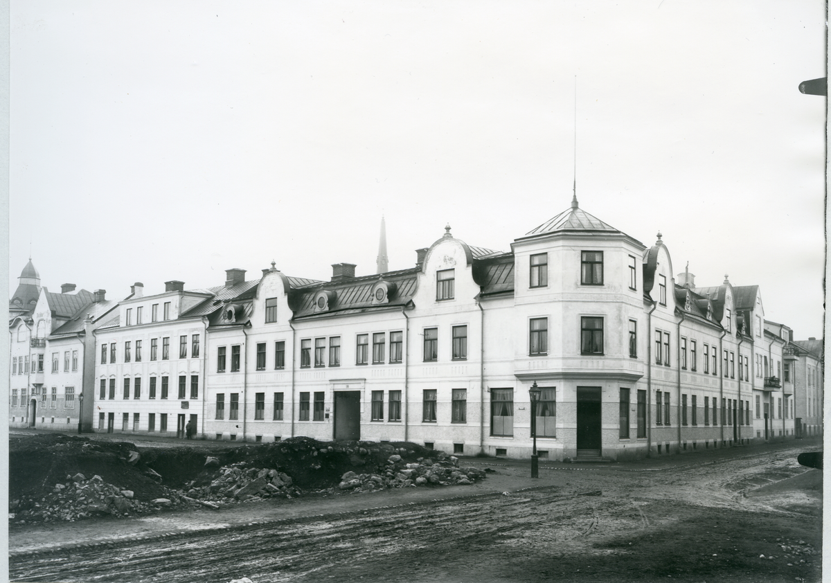 Byggnad i hörnet Nygatan/Västra Utanbygatan. C:a 1920-tal.