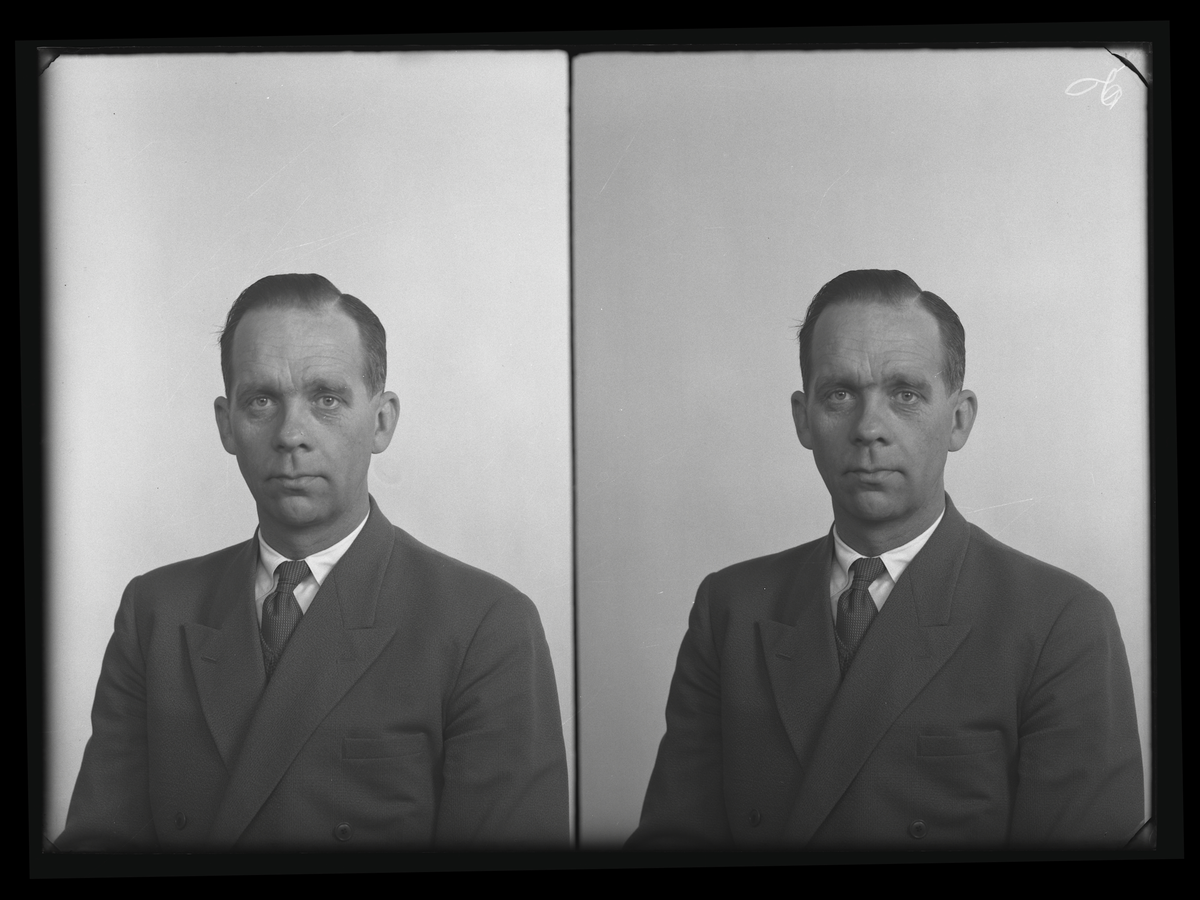 Porträtt, passfoto. Hjalmar Nilsson, Sörstafors.