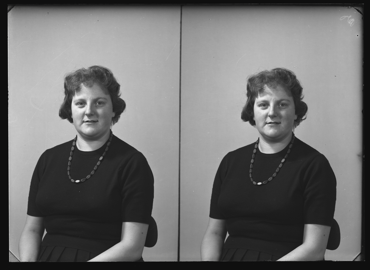 Porträtt, körfoto. Gunhild Uddberg, Vänsta. Kolbäck. Ur Gustaf Åhmans samling.