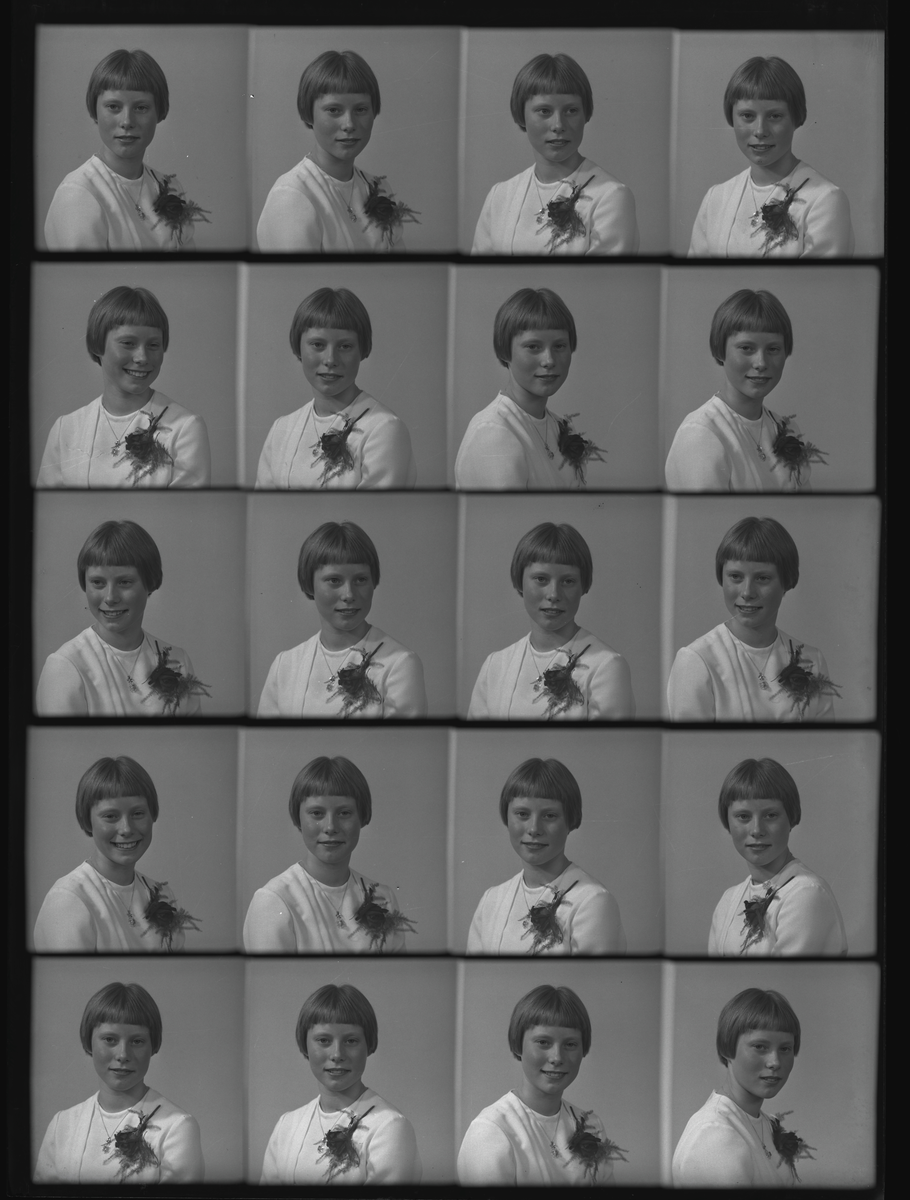 Porträtt, polyfoto. Agneta Karlsson, Gränby, Kolbäck. Ur Gustaf Åhmans samling.