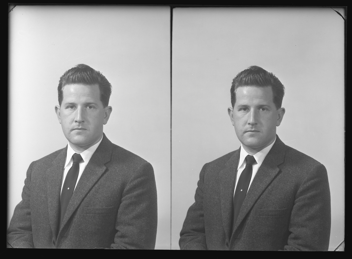 Mansporträtt, passfoto. Stig Larsson, Oxelby,