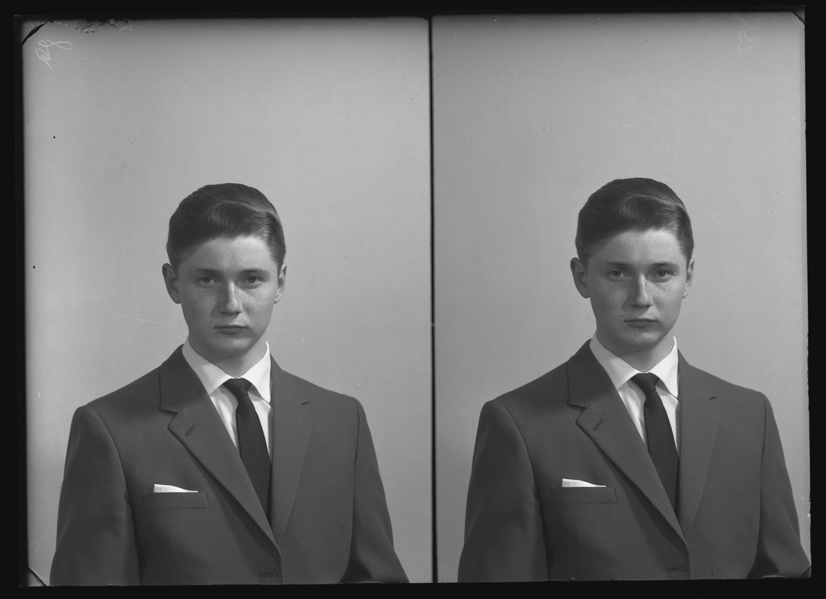 Porträtt, passfoto. Bo Ivarsson, Mölntorp, Kolbäck. Ur Gustaf Åhmans samling.