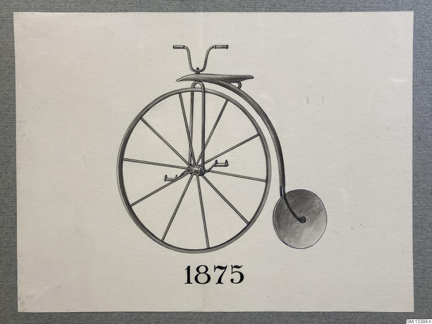 Beskrivning: 3 st fotografier på cyklister poserande i fotostudio och två teckningar föreställande olika cykeltyper, monterade i en ram. 25. Anders Öfverström 1893. 26. Henning Öfverström 1893. 27. Thure Öfverström 1894.