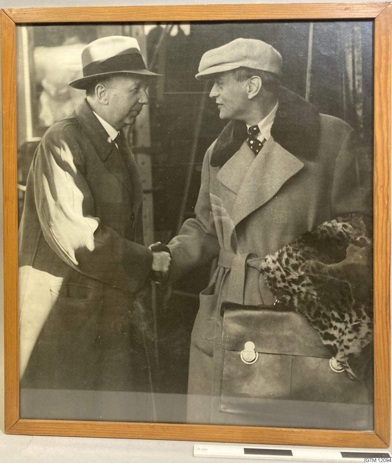 Hammarén hälsar Ekman välkommen till Gbg 26/4 1933. Bilden kommer sannolikt från Göteborgs Handelstidnings kamerareportage.