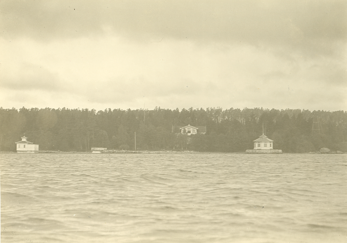 Bilder av släkten Brodin från hemmet på Norrlandet. Vy över lantstället "Marieberg", fotot taget från havssidan.