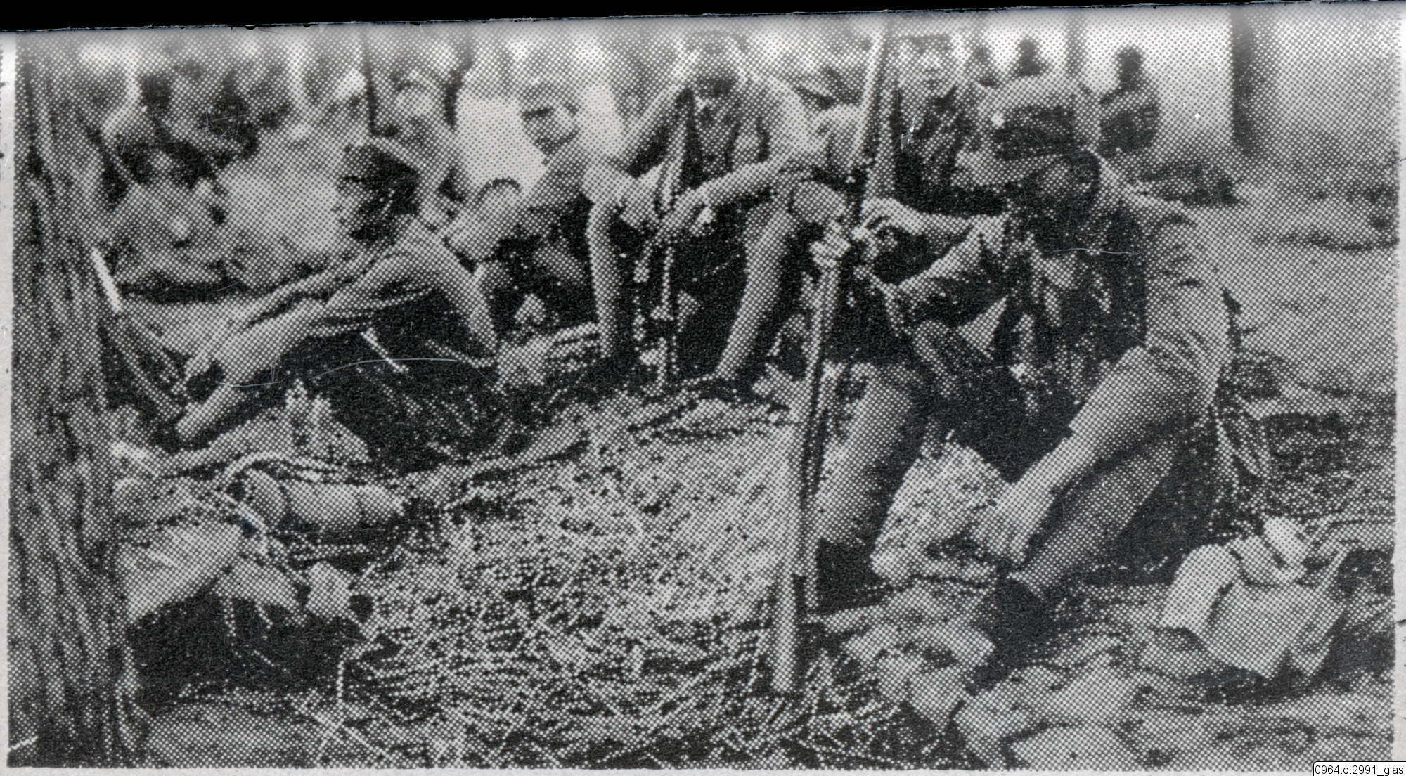 vapen, träd, gruppbild, uniform, soldat, fotografi, photograph