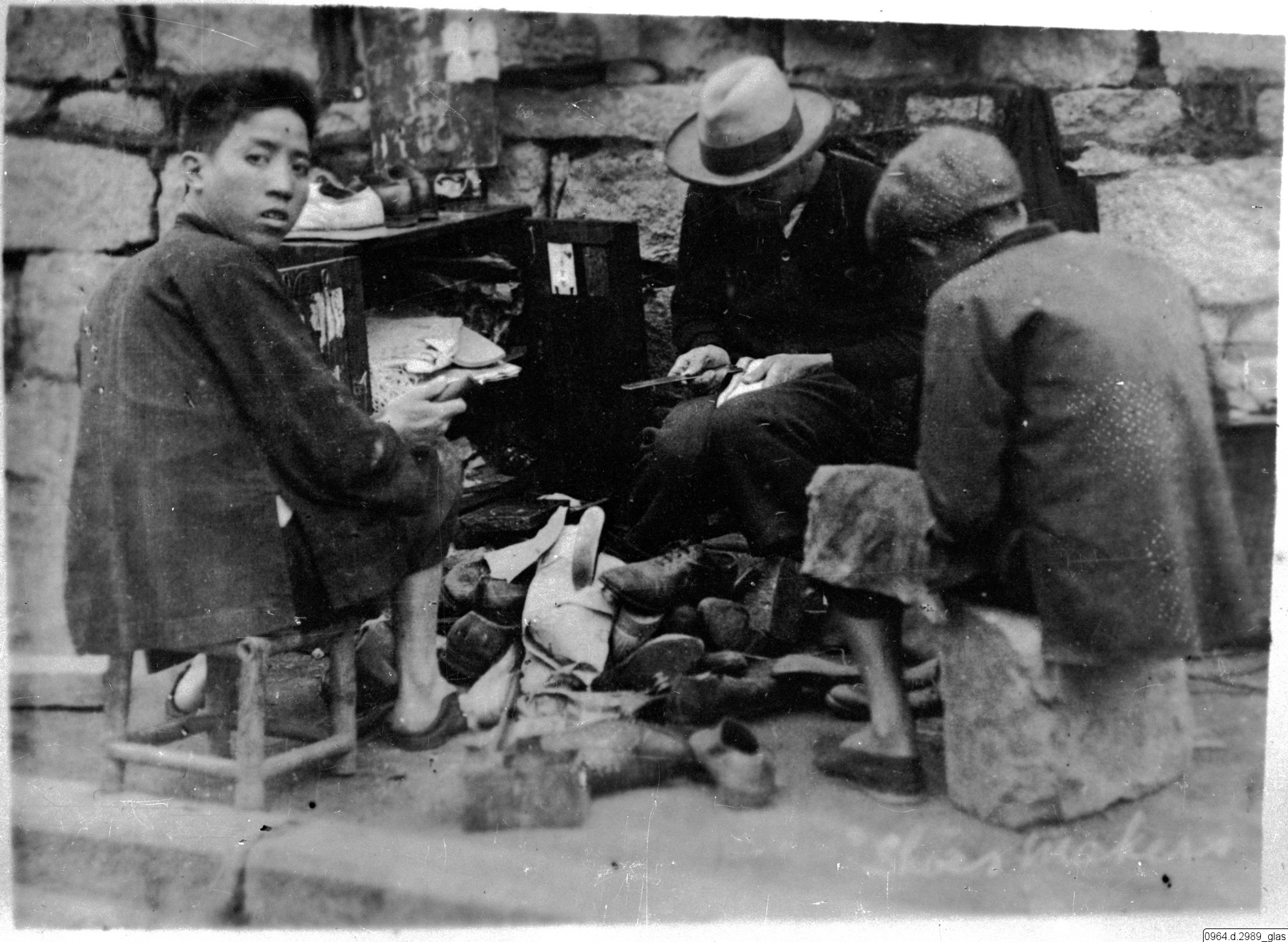 Skomakarverkstad i ett gathörn.