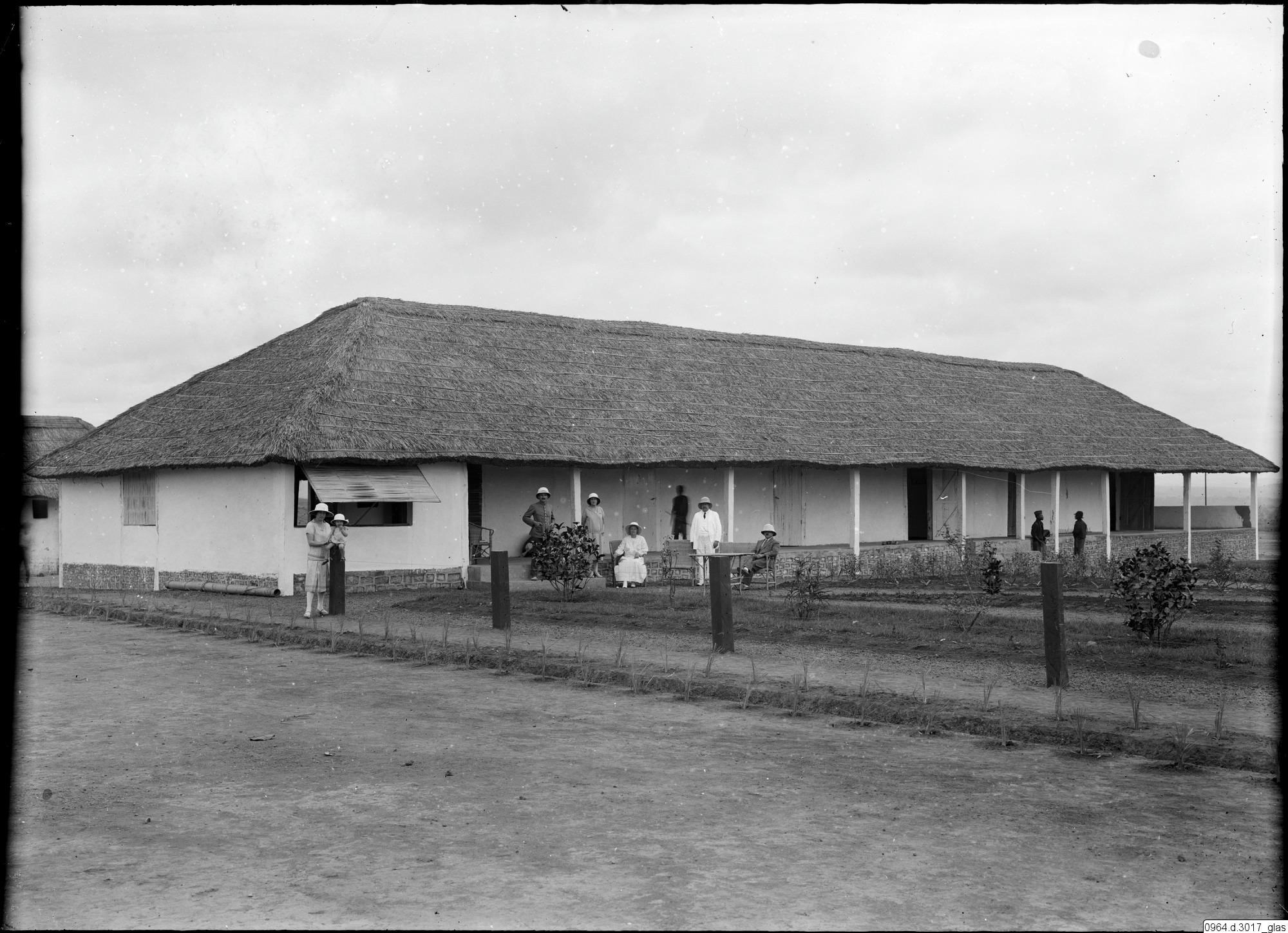 barn, tropikhjälm, byggnad, gruppbild, missionärer, fotografi, photograph