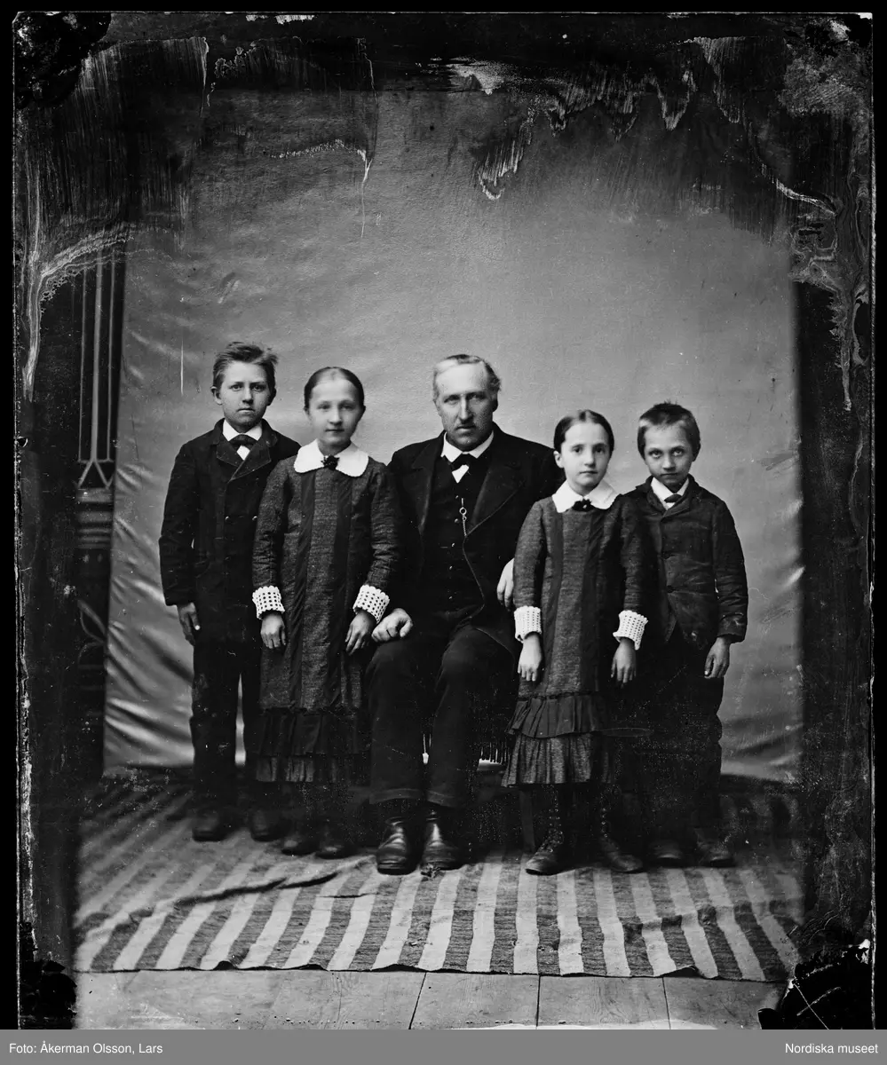 Skolläraren och kantorn Per Björling (1833-1918) med sina barn Karl, Alfhild, Anna och Fride. Björling byggde orgeln till Lima kyrka 1876. Han blev änkeman 1885. Bilden är troligen från detta år.