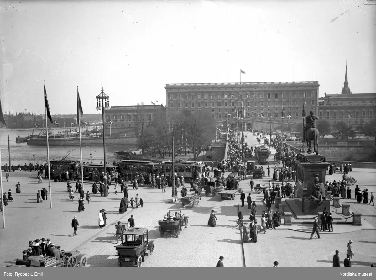 Gustav Adolfs Torg d. 22/5 1919. Prins Axels och Prinsessan Margaretas bröllop.