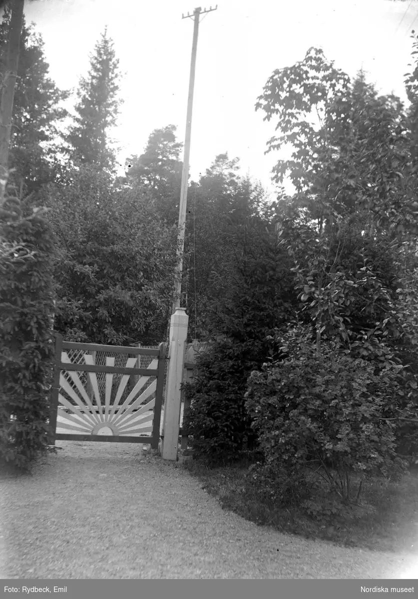 Ingångsport, grind, till Ocean villan med gul törnrosbuske.