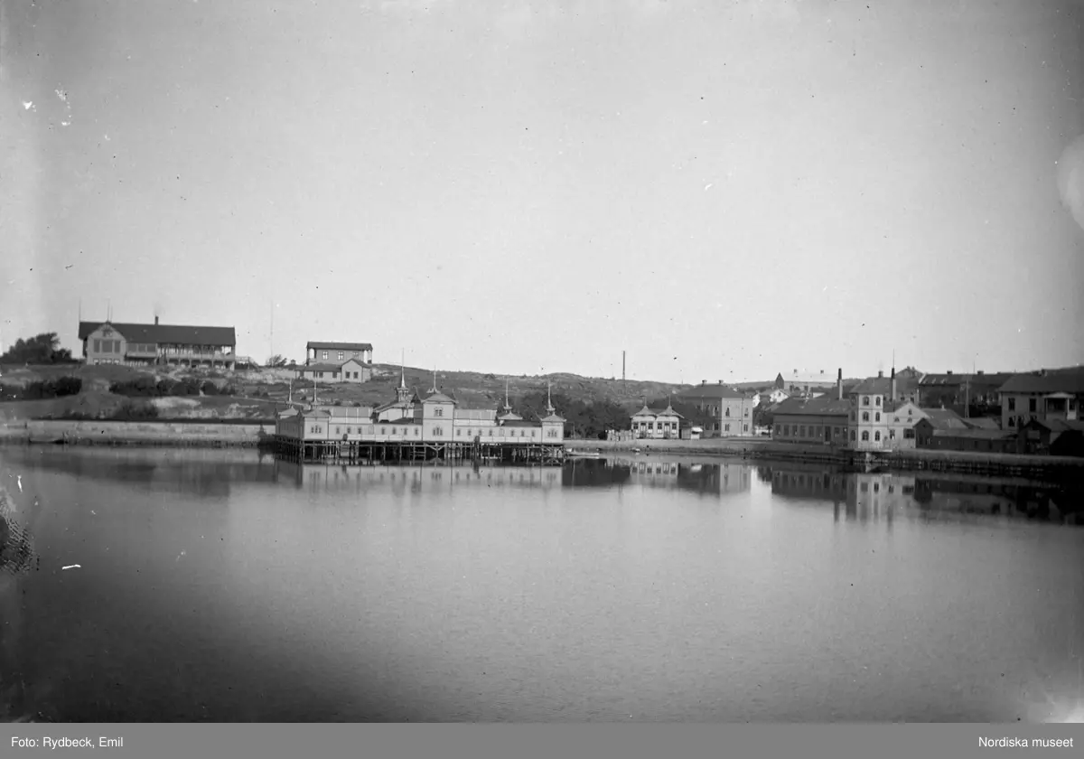 Utsikt mot ett kallbadhus, troligen Strömstad.
