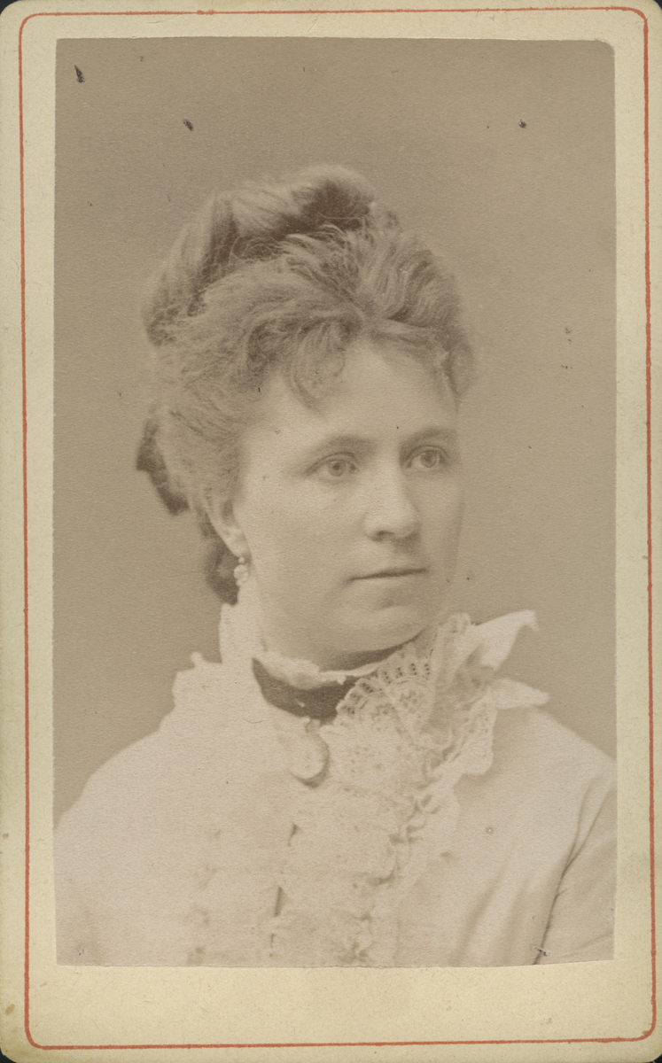 Porträtt av skådespelerskan fröken Gurli Åberg (enligt text baksida kort).