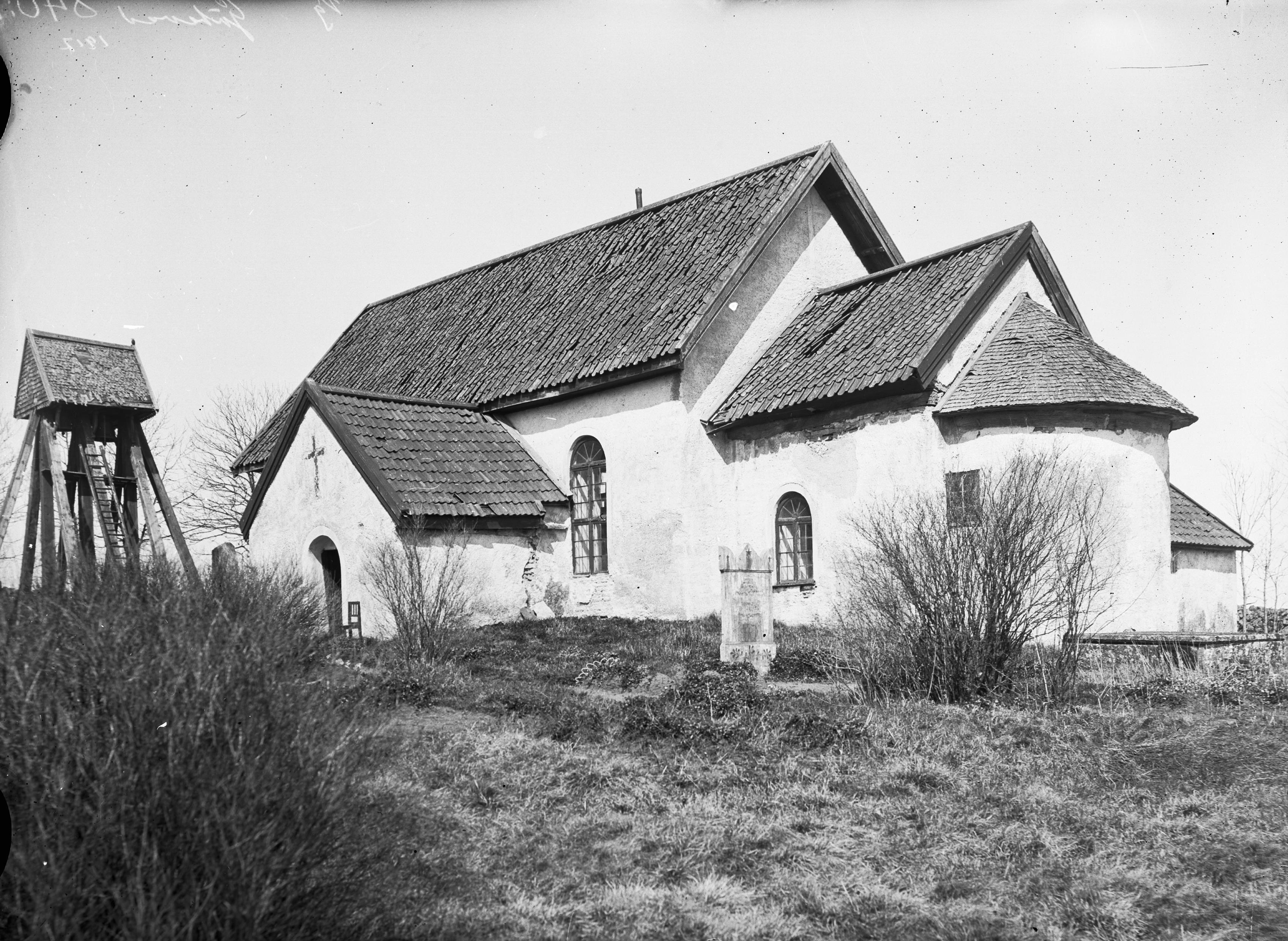 Kyrkan och klockstapeln från sydöst.