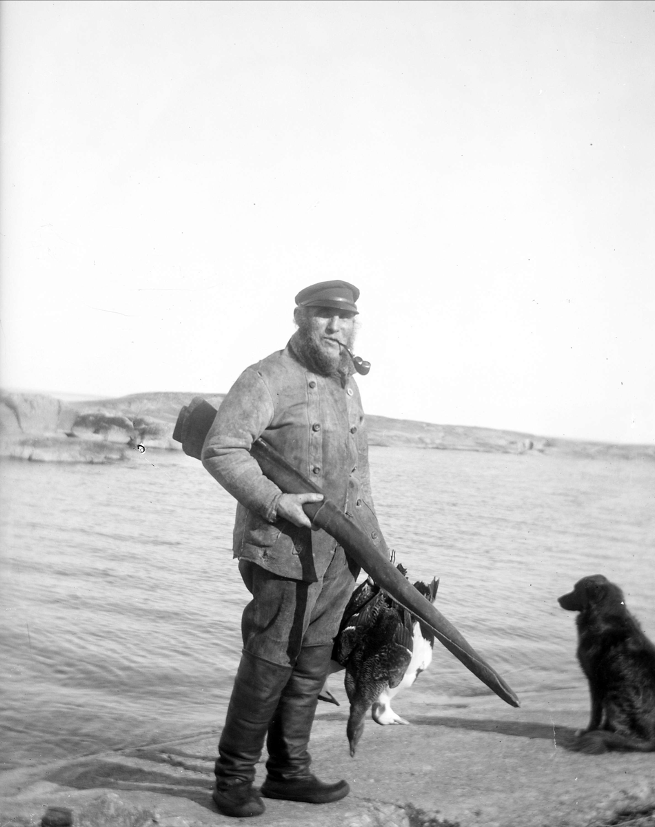 Jägare med hund och gevär