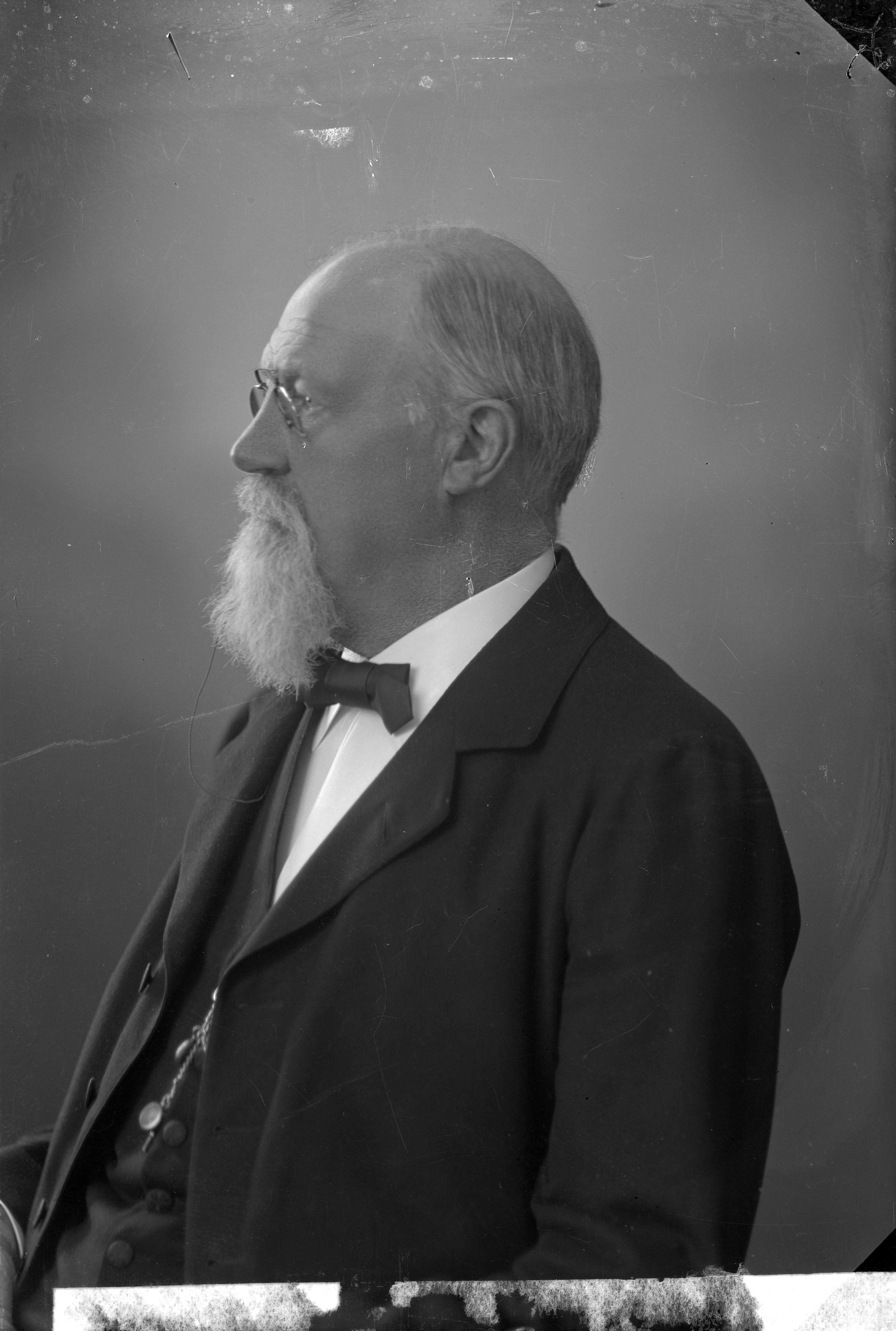 Porträtt i halvfigur, profil, av läkaren C. G. Lindblom.