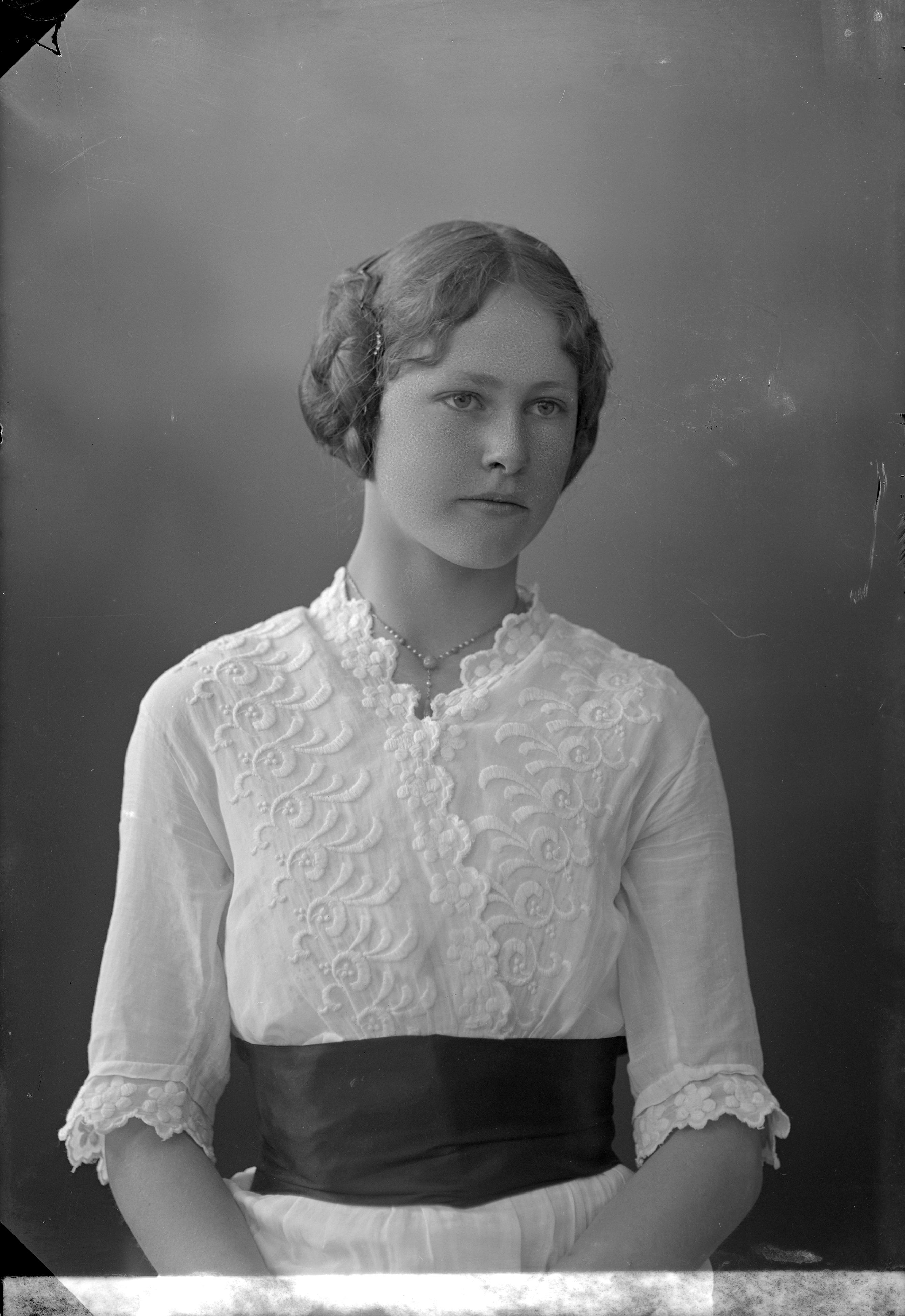 Beskrivning: Porträtt i halvfigur av Hildur Nilsson.