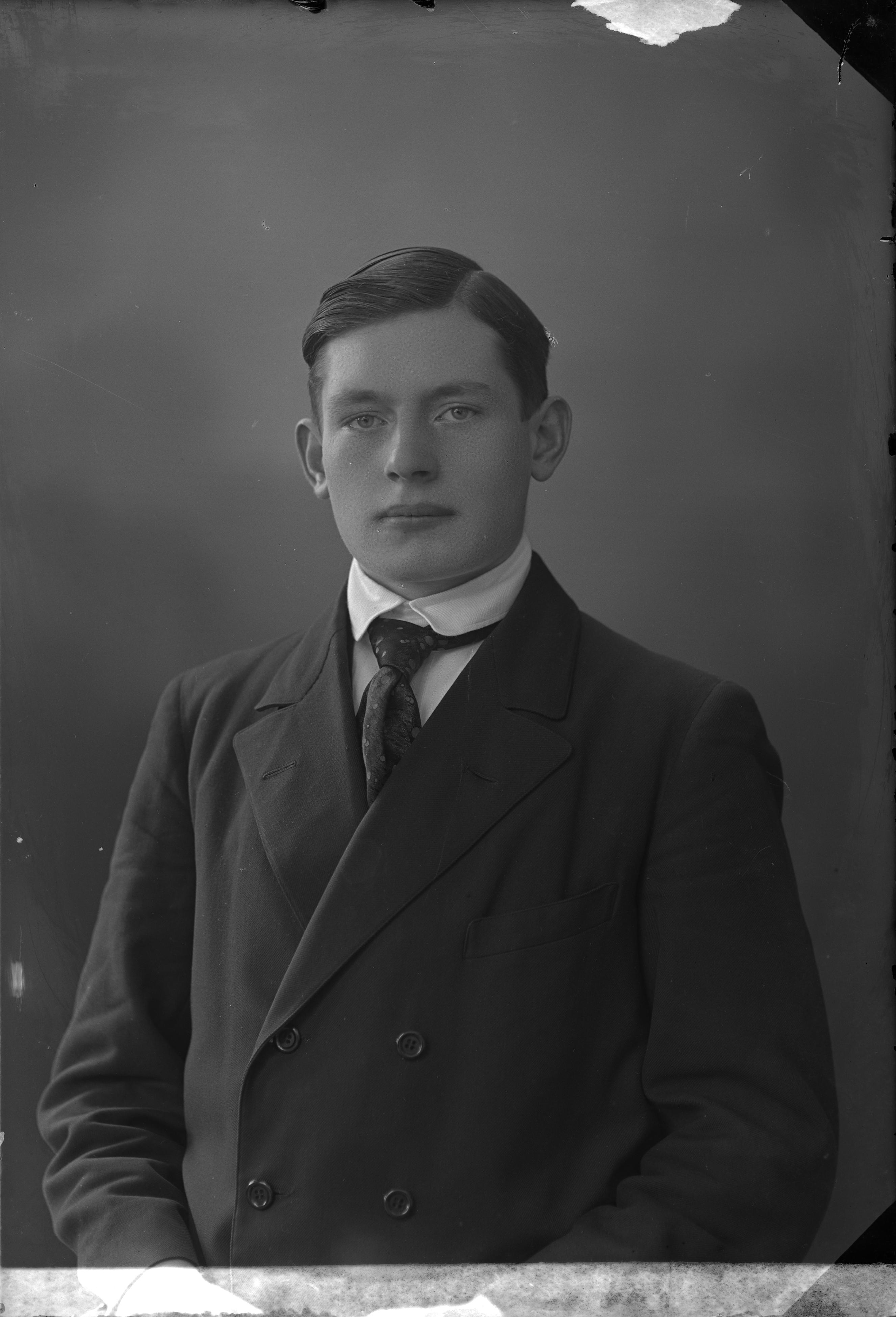 Beskrivning: Porträtt i halvfigur av S. Norrman.
