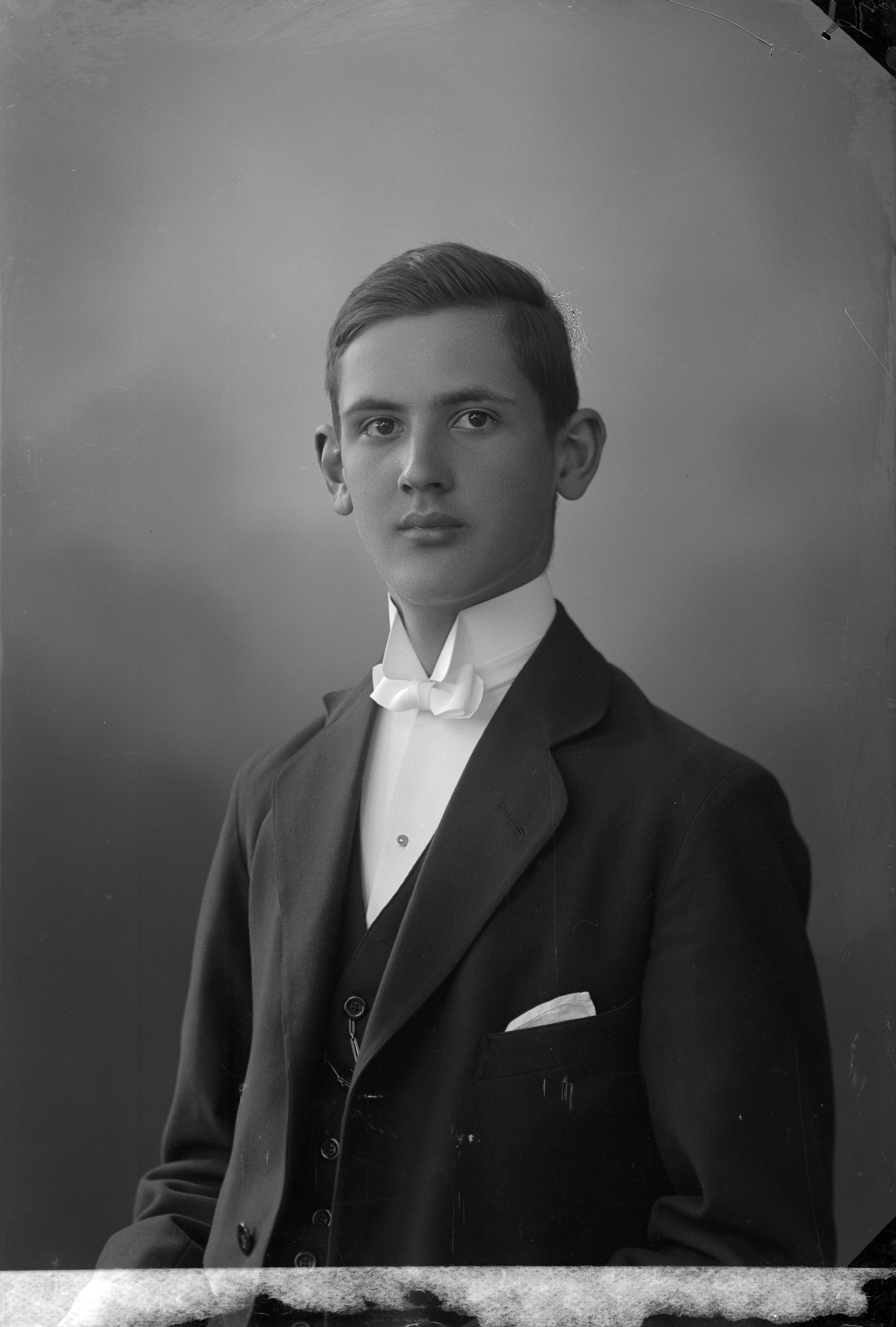 Beskrivning: Porträtt i halvfigur av Gilbert Lundvall.
